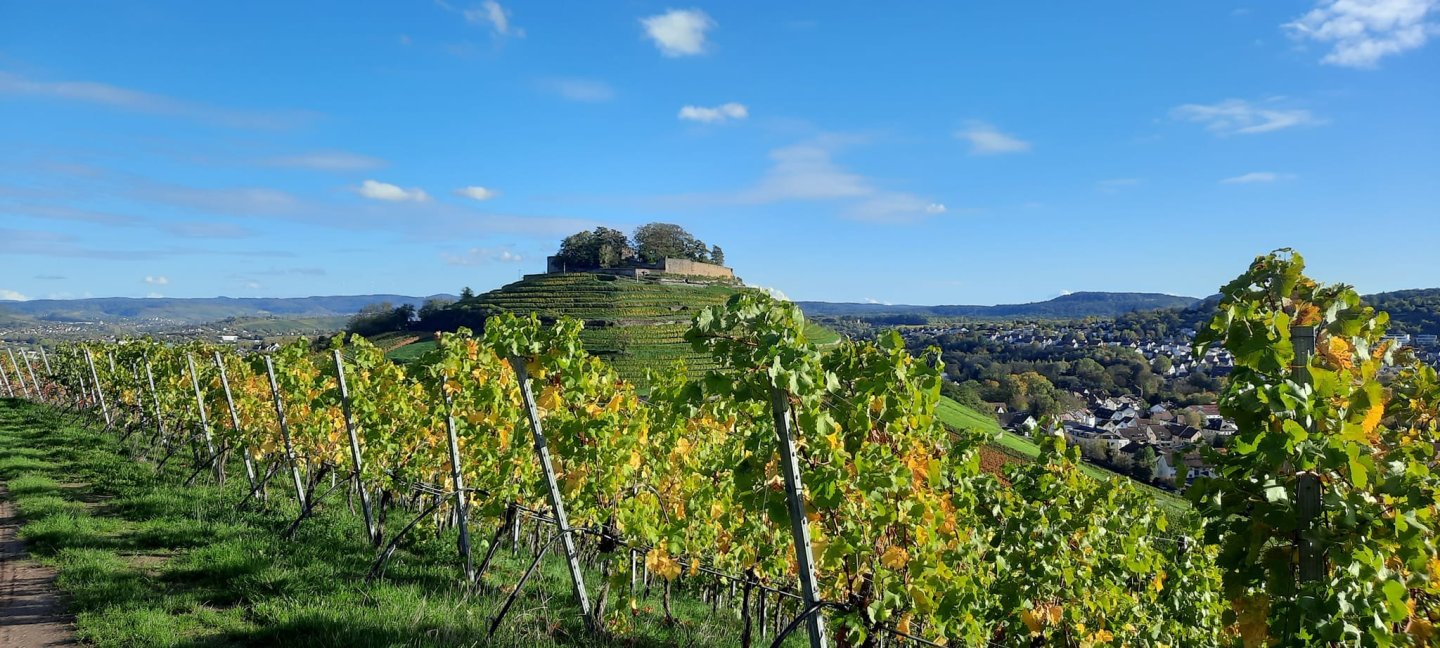 Foto aus der Luft von Johanneskirche und Burgruine Weibertreu