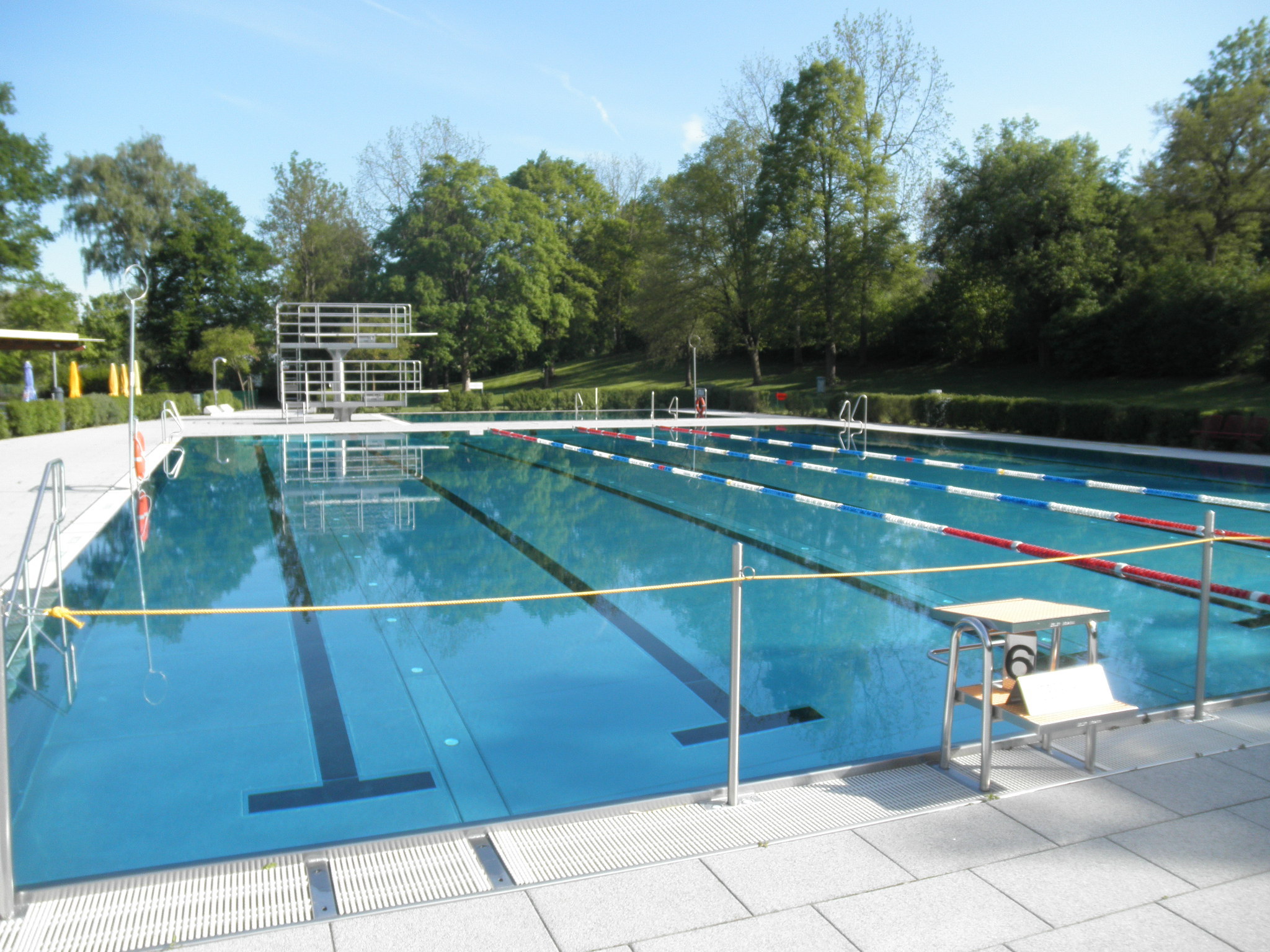 Ein separater Sprungbereich mit 1-Meter und 3-Meterbrett ist ebenfalls vorhanden.