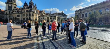 Der Samstag stand ganz im Zeichen des kulturellen Austauschs und der Erkundung der sächsischen Landeshauptstadt Dresden. Im Panometer begab sich die Gruppe auf eine einmalige Zeitreise in Dresdens Vergangenheit und lernte die Stadt als 360°-Panorama kennen. Die Rundbilder des Künstlers Yadegar Asisi mit einer Höhe von 27 Metern gelten seit 2006 als Geheimtipp unter den Ausstellungen und Museen in Dresden. Bei dieser Reise zurück in die Vergangenheit erlebt man die glanzvolle Epoche des Dresdner Barock zwischen 1695 und 1760 hautnah.