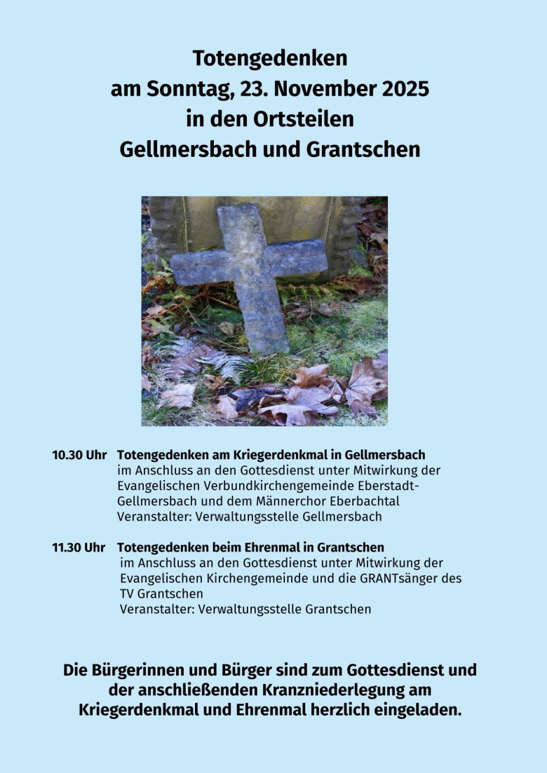 Totengedenken am Sonntag, 23. November 2025 in den Ortsteilen Gellmersbach und Grantschen
