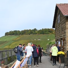 Trotz zunächst frischer Temperaturen nutzten unzählige Gäste die Gelegenheit, auf der rund sechs Kilometer langen Strecke die atemberaubende Aussicht über die bunt gefärbten Weinberge zu genießen. An 15 Stationen präsentierten die teilnehmenden Weingüter ihre erlesenen Weine und Sekte. Begleitet wurden diese von einer großen Auswahl regionaler Spezialitäten: von Currywurst über Winzerweck, Pulled Pork und Zwiebelkuchen bis hin zu Maultaschenburgern, Grillwürsten und zahlreichen kleinen Leckereien. Auch Kaffee und hausgemachter Kuchen luden zum Verweilen ein und trugen zur geselligen Stimmung entlang der Route bei.