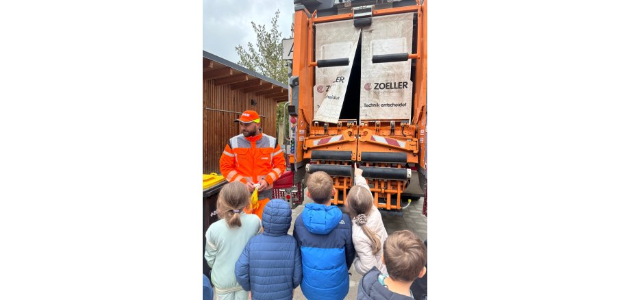In Kleingruppen konnten die über 100 Kinder die Arbeit der Müllabfuhr hautnah kennenlernen: