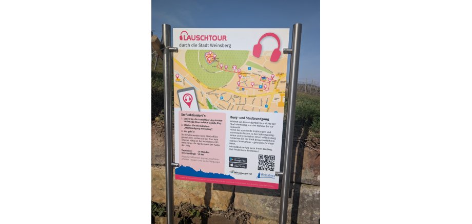 Wer interessiert ist, kann die kostenlose Lauschtour-App im App Store oder bei Google Play herunterladen und darin den Burg- und Stadtrundgang Weinsberg auswählen. Mit aktivierter GPS-Funktion starten die einzelnen Lauschpunkte entlang der Route automatisch. Ohne GPS lassen sich alle Stationen bequem über die Kartenansicht in der App aufrufen. Startpunkt der Tour ist am Parkplatz Burg Weibertreu/Grasiger Hag am Aufgang zur Burg. Dort befindet sich eine Hinweistafel, die Besucher auf die Tour aufmerksam macht.