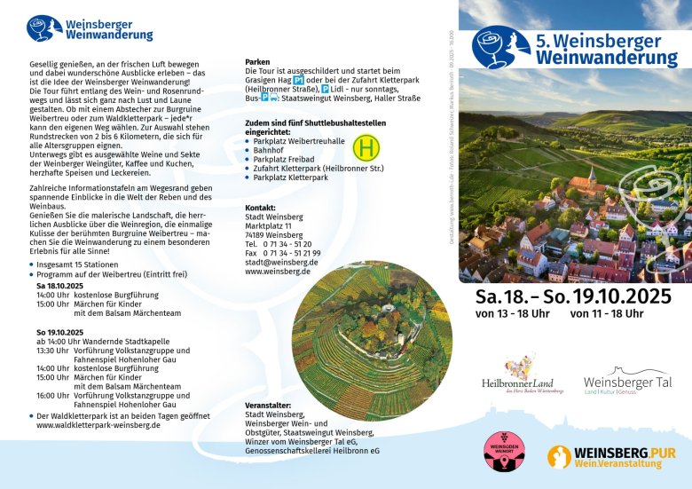 Veranstalter: Weinsberger Wein- und Obstgüter, Staatsweingut Weinsberg, Winzer vom Weinsberger Tal eG, Genossenschaftskellerei Heilbronn eG, Stadt Weinsberg